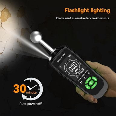 Mäter fukt i väggar, tak, golv och trä utan att lämna märken – idealiskt för källare, betong, puts och gips.