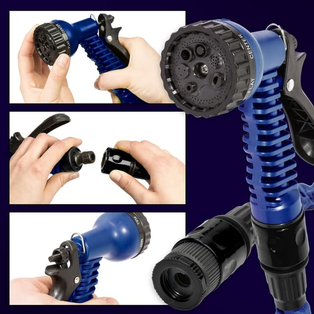 Denna trädgårdsslang är ett sant under inom trädgårdsbevattning. Din hjälpreda i trädgården kan användas flexibelt, till exempel för att vattna rabatter, gräsmattor eller krukväxter. Trädgårdsslangen passar lika bra för rengöring av redskap, men även av större ytor som till exempel på en bil. De 7 inställbara sprejfunktionerna gör att munstycket kan ställas in för rätt sorts bevattningstyp. När din trädgårdsslang fylls med vatten blir den upp till 3 gånger längre. Köp hem trädgårdsslangen så din trädgård håller sig i ypperligt skick.