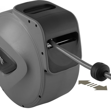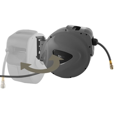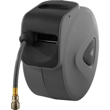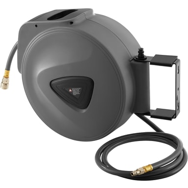 Denna bärbara tryckluftsslang från tectake skapar mer mobilitet och ordning i verkstaden eller i ditt hem. Denna slang med snabbkoppling kan enkelt dras ut till önskad längd och genom ett kort ryck rullas den jämnt och automatiskt upp igen. Den avtagbara vägghållaren kan vridas i 180° och förhindrar därmed att slangen viks. Det kompakta höljet i stabil plast ger ett utmärkt skydd mot yttre påverkan och levereras komplett förmonterat - således kan denna tryckluftsslang snabbt börja användas.