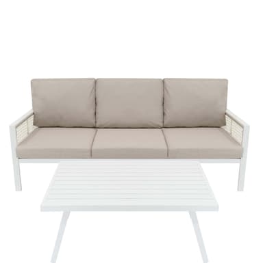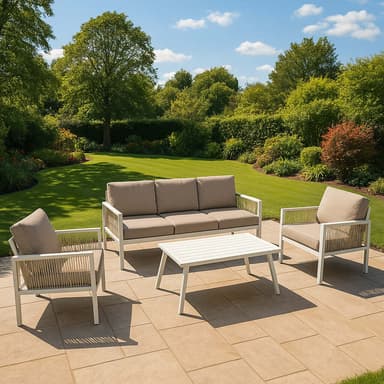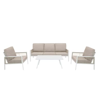 Förvandla ditt utomhusutrymme med detta 4-delade soffset i aluminium i vitt, ett elegant och modernt tillskott till vilken uteplats eller trädgård som helst. Designad för både avkoppling och underhållning, detta eleganta set innehåller en rymlig tresitssoffa, två bekväma fåtöljer och ett matchande soffbord, som erbjuder gott om sittplatser för familj och gäster. Den vita finishen utstrålar modern elegans, vilket gör den till ett sofistikerat val för alla utomhusmiljöer. Oavsett om du njuter av ett lugnt morgonkaffe eller är värd för en kvällssammankomst, ger detta set den perfekta blandningen av komfort och hållbarhet. Tillverkad av högkvalitativt pulverlackerat aluminium, är detta soffset byggt för att motstå väder och vind samtidigt som det behåller sitt orörda utseende. Det medföljande regnskyddet ger extra skydd när det inte används, vilket håller dina möbler rena och redo för njutning. Lätt men ändå robust, aluminiumramen gör det också enkelt att arrangera om setet för att passa ditt utrymme och tillfälle. Komfort är kärnan i denna sets design, med djupa och inbjudande sittplatser som låter dig varva ner helt. Den rymliga tresitsiga soffan och fåtöljen ger generöst utrymme att luta sig tillbaka och koppla av, medan det medföljande bordet erbjuder en bekväm yta för drinkar, snacks eller dekorativa accenter, vilket förbättrar funktionaliteten i ditt utomhusområde. Plyschkuddar ger exceptionell komfort, med avtagbara överdrag som har en bekväm dragkedja för enkel handtvätt. Med en stilfull och tidlös estetik, kompletterar detta set sömlöst alla utomhusinredningar, från minimalistisk modern till klassisk trädgårdsmiljö. Perfekt för dem som älskar att underhålla eller bara njuta av en fridfull friluftsliv, soffset i aluminium i 4 delar i vitt är ett måste för alla trädgårdar eller uteplatser. Produktegenskaper: * Elegant pulverlackerad aluminiumstomme * Rymlig 3-sits soffa & 2 fåtöljer * Bekvämt soffbord för drycker och snacks * Väderbeständiga tvättbara kuddar * Skyddande regnskydd ingår Specifikationer: * Färg: Vit * Totalvikt * Material: 55,1 kg Polyester Klädsel: 55,1 kg Polyester. Kuddmaterial: Skum * Sits Rygghöjd: 75cm / 0,75m / 29,5" * Sitthöjd: 42,5cm / 0,43m / 16,7" * Sittdjup: 82cm / 0,82m / 32,3" * Soffbredd Inklusive armar: /2,01 cm / 2,01 cm Bredd exklusive armar: 191cm / 1.91m / 75.2" * Stolsbredd inklusive armar: 74cm / 0.74m / 29.1" * Stolbredd exklusive armar: 64cm / 0.64m / 25.2" * Bordshöjd: / 4.59" / 4.59" Bordsskivans bredd: 111,5 cm / 1,12 m / 43,9" * Bordsskivans djup: 59 cm / 0,59 m / 23,2" * Sittvikt Kapacitet: 120 kg * Bordsvikt Kapacitet: 60 kg Box Innehåll: * 1 x Rymlig soffstol 2 x 1 Soffa Soffa 3-sits.
