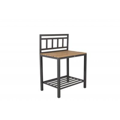 Prydlig, slitstark teak sätter prägel på en svart stomme av aluminium och utgör en arbetsbänk som står sig i alla slags väder.