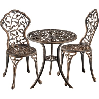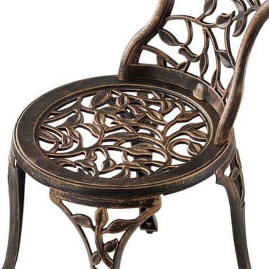 Det stilfulla bistrosetet Lyon från tectake imponerar med sina böljande former och vackert utformade bladornament, som sätter eleganta accenter i varje trädgård.