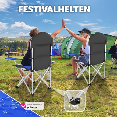 Denna campingstol är en perfekt följeslagare på alla dina fritidsaktiviteter, oavsett om det handlar om camping, fiske, strandsemester eller i trädgården. Luta dig tillbaka, njut av lugnet och naturen i denna campingstol som även är hopfällbar. Den bekväma stoppningen på denna gör det ännu lättare. Dina kalla drycker kan du enkelt placera i den inbyggda dryckeshållaren, även andra tillbehör får plats. Efter en avkopplande dag kan du helt enkelt fälla ihop campingstolen och ta med den hem i den medföljande bärväskan.