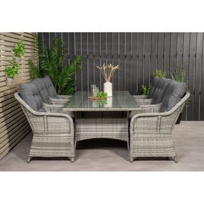 Denna loungefåtölj är lika vacker som den är bekväm, med grå, flätad konstrotting som vilar på en stomme av aluminium. Här erbjuds robust konstruktion och stor komfort.