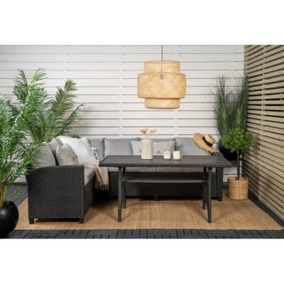 Ett genomgående svart tema som passar som hand i handske i den tidsenliga terrassen eller moderna altanen.