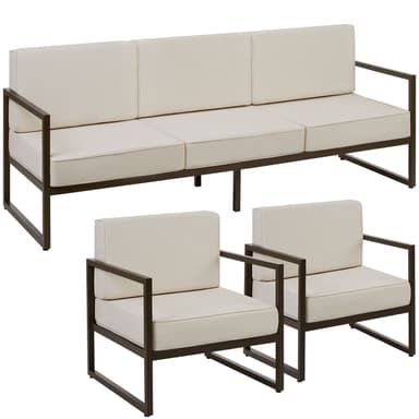 Upplev det stiliga och generösa loungesetet Comosa från tectake och ge din uteplats ett elegant lyft. Setet består av en bekväm 3-sitssoffa samt 2 bekväma fåtöljer som erbjuder plats för upp till fem personer, perfekt för långa sommardagar.