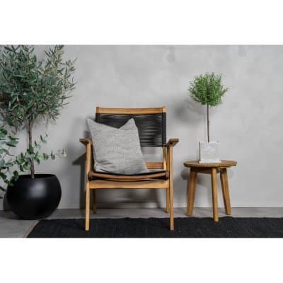 En härlig loungefåtölj/loungestol som präglas starkt av naturlig skönhet, med dess stomme av slittåligt akacia-trä.