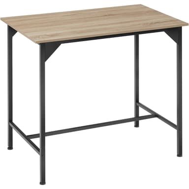 Edinburghs matbord med 4 barstolar från tectake ger ditt hem en inbjudande touch av robust mysighet. Setets minimalistiska industriella design, med en kombination av varmt trä och svalt stål, är ett riktigt blickfång som passar perfekt i både matsal och kök. Tack vare skruvfötterna i golvvänlig plast står bordet alltid stabilt, vilket ger en stadig bas. Den generöst höga 4-sitsiga matsalsgruppen kan enkelt skjutas ihop efter användning för att spara utrymme. Njut av en drink med vänner och skapa en charmig atmosfär med detta rustika matbord och barstolar från tectake.