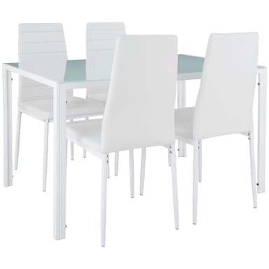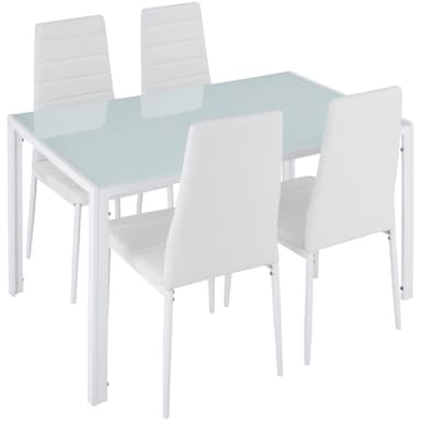 Upplev en perfekt känsla av stil och komfort med tectakes matgrupp Berlin. Dess tilltalande design smälter stiligt in överallt: De bekväma stolarna i slitstarkt konstläder kombineras med ett matbord som inte bara imponerar med säkerhetsglas utan också med sin trendiga elegans. Trots sin lätta konstruktion är både bord och stolar robusta och redo att förvandla ditt hem. Gör ett elegant val för ditt hem med tectakes matgrupp – där varje måltid blir en stilfull och bekväm upplevelse.