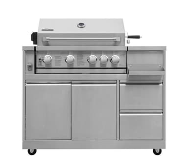 Robust gasolgrill i rostfritt stål. Den fristående grillen har 4 högeffektiva gasbrännare och 1 infrarödbrännare vars temperatur regleras med hjälp av 5 vred.Läs mer om produkten