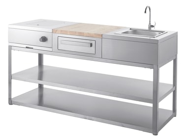 En vattenkran och diskho i uteköket hjälper dig snabbt och enkelt att både skölja, tvätta och hålla dina arbetsytor rena när du lagar mat utomhus. Vaskmodulen har en integrerbar design med stilrena linjer i rostfritt stål.Läs mer om produkten