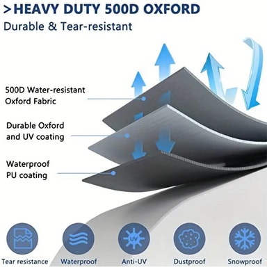 Vattentät och UV-beständig: Dessa möbelöverdrag är tillverkade av högdensitet 200D Oxford-tyg med en vattentät baksida, vilket säkerställer överlägset skydd mot regn, snö, UV-strålar och damm. Dina möbler förblir torra och orörda, säsong efter säsong.