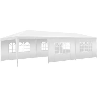 Trädgårdspaviljongens hjärta är den robusta stålramen, som tack vare sin pulverlackering är både hållbar och motståndskraftig. Partytältets presenningar är tillverkade av högkvalitativ plast och är helt vattentäta, så att du är säker och skyddad även när det regnar eller blåser.