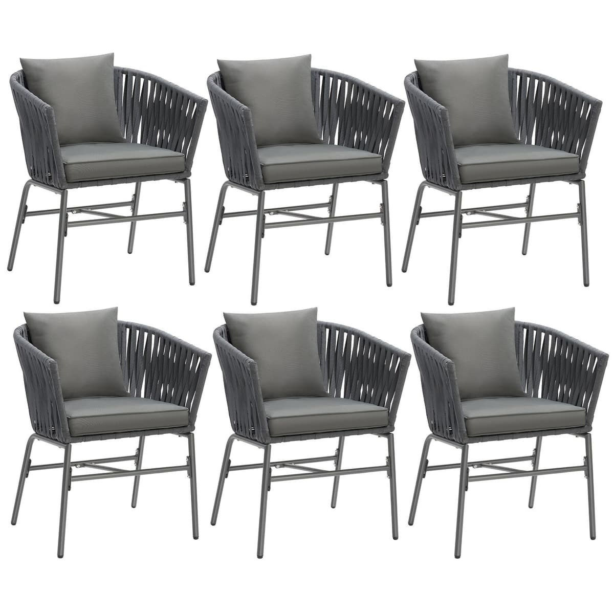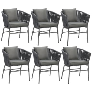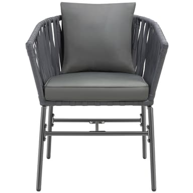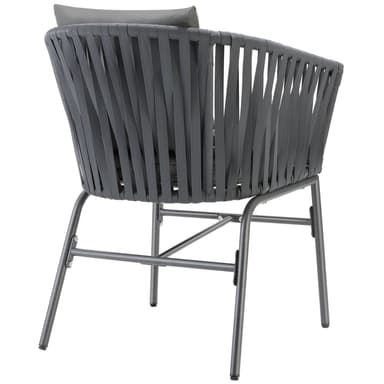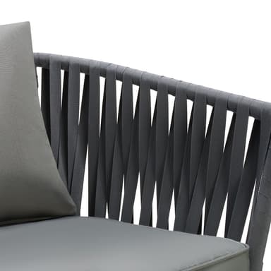 Den dekorativa flätningen på de genomgående arm- och ryggstöden ger stolarna en mycket speciell karaktär, medan de tjockt vadderade sitt- och ryggkuddarna säkerställer en hög komfort. Trädgårdsstolarnas överdrag av lättskött polyester är vattenavvisande och kan enkelt tas av och tvättas med hjälp av den smidiga dragkedjan.