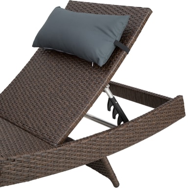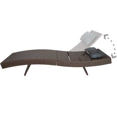 Med denna solstol i konstrotting från tectake ligger du alltid bekvämt. Hög komfort, hög stabilitet och tilltalande design är huvudegenskaperna hos denna lättskötta däckstol. För att du ska kunna hitta din individuella favoritposition är solstolens ryggstöd justerbart i fem olika lägen och utrustat med en mjuk huvudkudde. Sidorna och liggytan på solsängens vädertåliga konstruktionen är täckta av flätad konstrotting av hög kvalitet. Aluminiumställningen ger den stabilitet som behövs. Den perfekta solsängen för den perfekta solplatsen – från tectake.