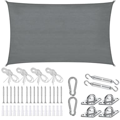 Det andningsbara tyget av rivtåligt HDPE-material erbjuder inte bara ett effektivt UV-skydd, utan imponerar också med sin enorma motståndskraft mot vind och regn. De rostfria stålringen i ändarna är fast insydda och möjliggör en säker och stabil fastsättning. Oavsett om det är på träd, stolpar eller andra fasta punkter – tack vare det medföljande monteringsmaterialet med spännband, spännskruvar, väggfästen, karbinhakar, skruvar och pluggar går uppsättningen snabbt och enkelt.