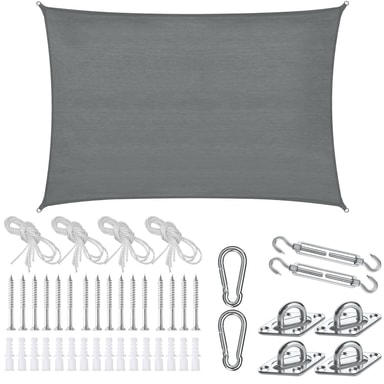 Det andningsbara tyget av rivtåligt HDPE-material erbjuder inte bara ett effektivt UV-skydd, utan imponerar också med sin enorma motståndskraft mot vind och regn. De rostfria stålringen i ändarna är fast insydda och möjliggör en säker och stabil fastsättning. Oavsett om det är på träd, stolpar eller andra fasta punkter – tack vare det medföljande monteringsmaterialet med spännband, spännskruvar, väggfästen, karbinhakar, skruvar och pluggar går uppsättningen snabbt och enkelt.