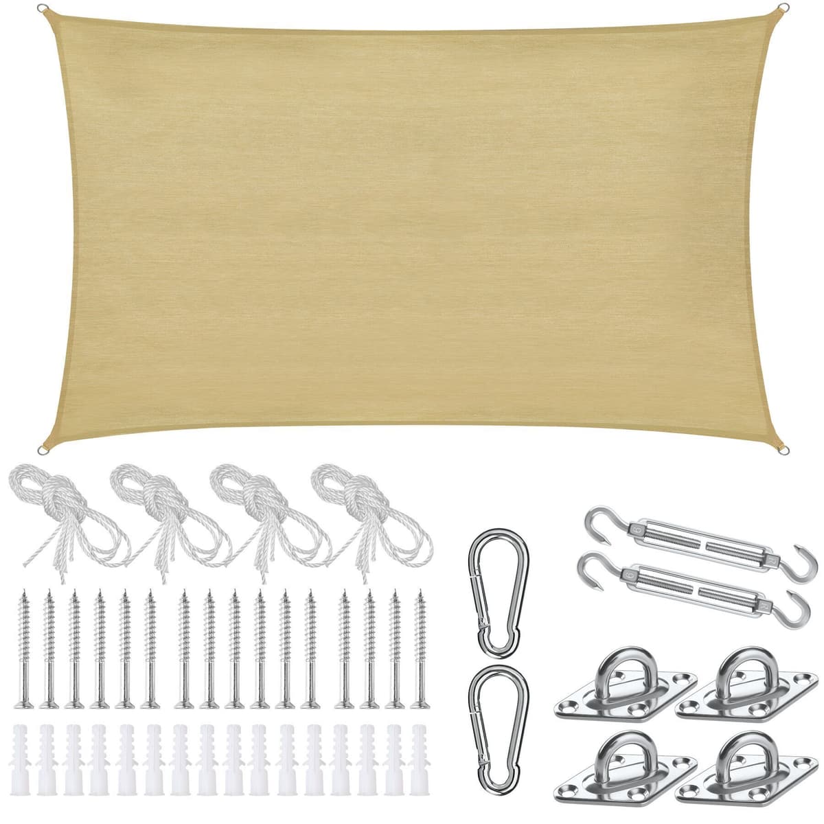 Det andningsbara tyget av rivtåligt HDPE-material erbjuder inte bara ett effektivt UV-skydd, utan imponerar också med sin enorma motståndskraft mot vind och regn. De rostfria stålringen i ändarna är fast insydda och möjliggör en säker och stabil fastsättning. Oavsett om det är på träd, stolpar eller andra fasta punkter – tack vare det medföljande monteringsmaterialet med spännband, spännskruvar, väggfästen, karbinhakar, skruvar och pluggar går uppsättningen snabbt och enkelt.