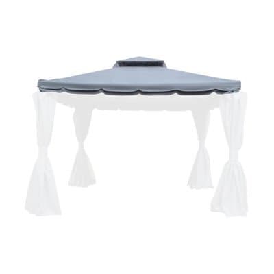 Vänligen notera: paviljongtaket är avsett att fungera som solskydd, ej vattenskydd, därav är som exempel övre parti försedd med spalter av nät, som släpper in vatten vid regn.