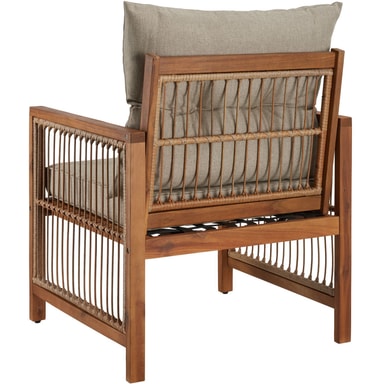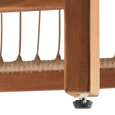 Den fint flätade konstrottingen imponerar inte bara med sin tilltalande design, utan ger även en hög hållbarhet. I kombination med den massiva träramen erbjudeds en hög stabilitet samt förstklassig bärförmåga. De två höjdjusterbara plastfötterna per fåtölj ger dessutom ett säkert stöd på alla underlag.