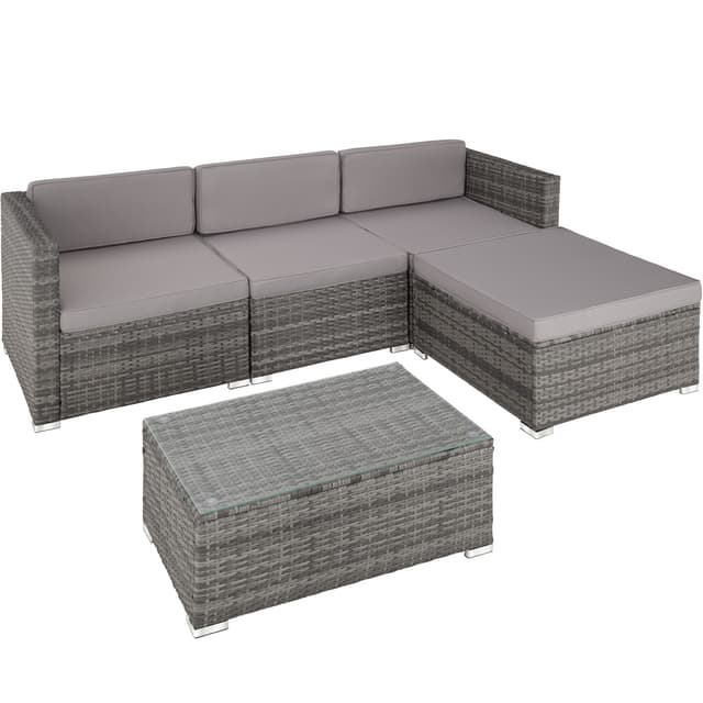 Skapa en mysig plats för att ta det lugnt och drömma dig bort med detta eleganta loungeset från tectake. De tjocka och mjuka dynorna är perfekta när du vill slappna av. Vid sidan av den höga mysfaktorn och det tilltalande utseendet är denna lättskötta sittgrupp också mycket stabilt tack vare den robusta stålramen. De individuella möjligheterna förtjänar också att nämnas. De enskilda elementen i detta funktionella loungeset kan kombineras fritt. Övertygar med sin mångsidighet. Övertygar med sitt utseende: Ditt nya mysiga loungeset från tectake.