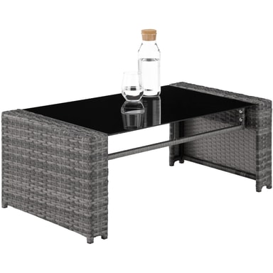 Setet inkluderar ett bord med avtagbar glasskiva (89 x 50 x 36,5 cm), idealiskt för att hålla drycker och snacks nära till hands utan att ta upp för mycket plats.