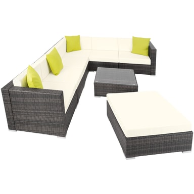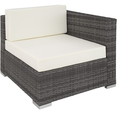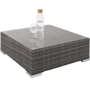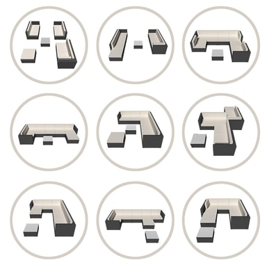 Oavsett om ditt nya loungeset ska användas i trädgården eller inomhus: Vår Soffgrupp kan användas flexibelt och lyfter din trädgård, terrass, uterum eller vardagsrum. De bekväma stolarna och det eleganta bordet inbjuder till trevliga stunder. Vårt loungeset är inte bara elegant utan imponerar även genom sin långa livslängd. Den låga vikten gör det bekvämt att transportera möblerna. Bordsytan i glas gör ett mycket elegant intryck och är extremt lättrengjord. De mycket bekväma sittkuddarna i polyester är väl färgkombinerade med konstrottingen och har dragkedja på baksidan för enkel rengöring. För att skydda dynan från genomfuktning är ytan impregnerad. På så sätt rinner smuts- och vattendroppar helt enkelt av. Genom de olika delelementen kan loungeset Marbella arrangeras helt efter dina önskemål.