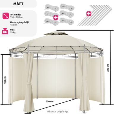 tectake Lyx-trädgårdspaviljong 3,5m Siana - creme