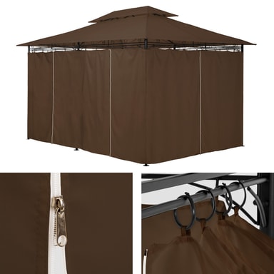 Med denna lyx-trädgårdspaviljong med 6 sidodelar förvandlar du din trädgård eller terrass till en äkta må bra-oas. För skugga på heta dagar eller kvällens trädgårdsparty. Paviljongen passar utmärkt för alla användningsområden utomhus. De arbetade ornamentdekorationerna ger paviljongen sin luxuösa design. Praktiskt: Tack vara sidoväggarna störs du varken av vind eller nyfikna blickar. Det utskjutande taket släpper ut värme och låter frisk luft cirkulera på ett optimalt sätt. Hämta hem din lyx-trädgårdspaviljong till trädgården nu.
