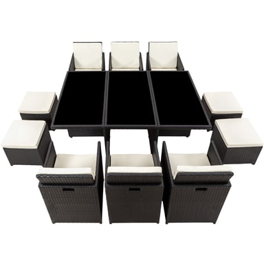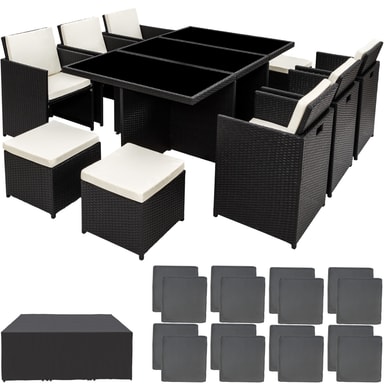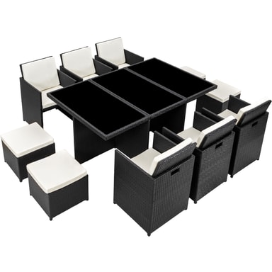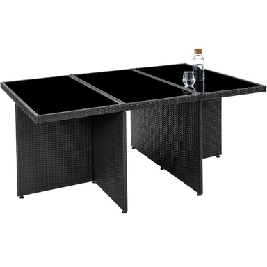 Matgrupp New York passar både i trädgården och inomhus. Våra sittmöbler i konstrotting är flexibelt användbara och ger din trädgård, terrass, uterum eller vardagsrum ett lyft. Bekväma stolar och det eleganta bordet bjuder in till trevliga stunder. Vår soffgrupp utmärker sig, inte bara genom sin attraktiva design utan även genom sin långa livslängd. Den låga vikten gör möblerna lätta att transportera. Bordsytan med 3 glassektioner är mycket elegant och extremt lätt att rengöra. De bekväma gräddfärgade sittkuddarna i polyester är väl färgkombinerade med rottingmöblerna och på baksidan har de ett blixtlås, för enkel rengöring av dynorna. För att skydda dynorna från genomfuktning, är ytan impregnerad. På så sätt rinner smuts och vattendroppar helt enkelt av. Få känslan av en pulserande huvudstad i ditt hem med vår matgrupp New York!