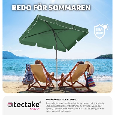 Det mångsidiga parasoll från tectake är bekvämt att hantera och lätt att använda. Med några få handgrepp är den stabila konstruktionen klar att använda. Tack vare den smidiga mekanismen kan solskyddet enkelt öppnas och stängas. Tack vare vridreglaget och böjleden kan den rörliga skärmen ställas in exakt i det läge som du önskar. På grund av formen och storleken passar det fyrkantiga parasollet med sin klassiska design extra bra på mindre terrasser och balkonger. Liten storlek, stora möjligheter: det praktiska parasollet från tectake. Köp ditt nya parasoll och njut av sommaren i sval skugga.