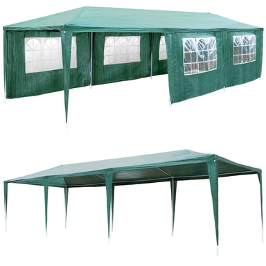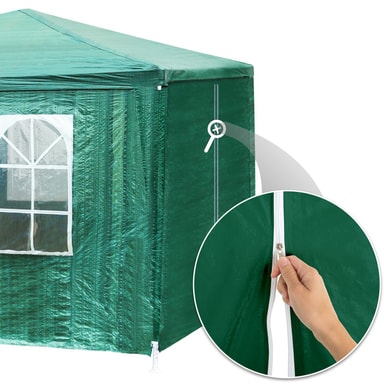 Skapa en skyddad mötesplats på landet för dig och dina nära och kära med den attraktiva Elasa-paviljongen från tectake. De stora utsiktsfönstren säkerställer utmärkta ljusförhållanden inuti, beroende på dina önskemål och väderförhållanden kan de åtta sidopanelerna också enkelt tas bort. Tack vare det praktiska plug-in-systemet är det mångsidiga partytältet klart att användas i bara några få steg utan verktyg och kan demonteras lika snabbt efteråt. Den pulverlackerade stålramen kan förankras i marken för ännu större stabilitet - det perfekta tillskottet till en lyckad trädgårdsfest: den extremt lättskötta paviljongen Elasa från tectake.