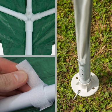 Paviljongen bör inte användas eller stå ute i händelse av kraftiga vindar eller liknande väderförhållanden, som kan skada den.