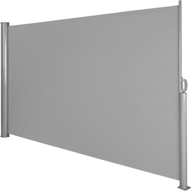 Vår robusta sidomarkis ger effektivt skydd mot insyn, sol och vind. Tillverkad av högkvalitativt polyester med vattenavvisande beläggning och monterad i ett slitstarkt aluminiumhölje för optimalt skydd.