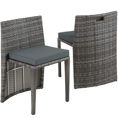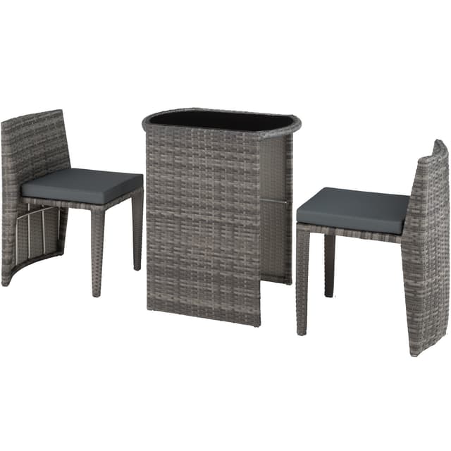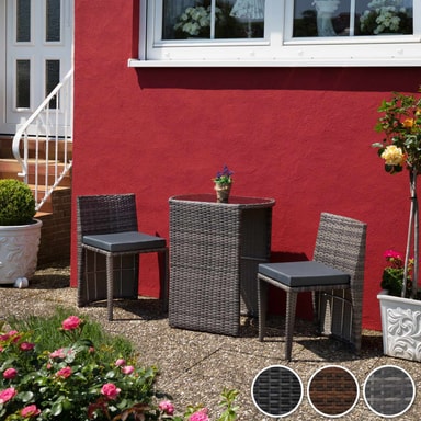 Denna eleganta sittgrupp från tectake passar utmärkt till måltider, för att slappna av och njuta i det fria. Cafésetets bord och stolar levereras färdigmonterade och har bekväma och vattenavvisande dynor. När sittgruppen inte används kan den skjutas ihop för att ta lite plats. Denna cafégrupp lämpar sig utmärkt för utomhusbruk, tack vare det flätade materialet av slitstark polyrotting och den stabila ramen av aluminium. Litet, lätt och avslappnat: Denna inbjudande sittgrupp från tectake kombinerar genomtänkt design med hög mysfaktor.