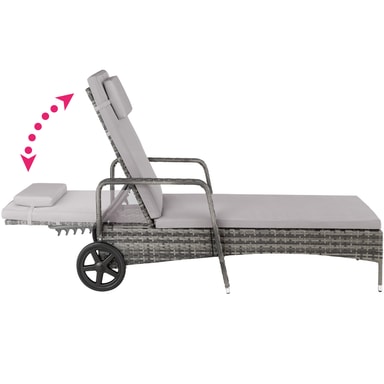 För att underlätta förflyttning har Cassis solstol två praktiska hjul vid huvudänden. Lyft bara upp fotänden och rulla solstolen till den perfekta platsen i din trädgård eller på din terrass. Solstolen är också utrustad med fyra starka och hållbara fötter med speciella plastlock som skyddar känsliga golv både inomhus och utomhus.