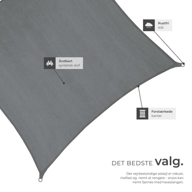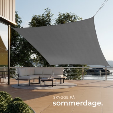 Med detta praktiska solsegel skapar du skugga på ett anslående sätt i trädgården, på uteplats eller på balkongen. Men solseglet är inte bara lämpat för hemmabruk – det kan också användas vid poolen, på campingen eller vid utomhusfester eller friluftsarrangemang. Solseglet fungerar även bra som insynsskydd. Skydda barnen i sandlådan från att bränna sig i solen. Solseglet är flexibelt och ett bra solskydd som ger ett UV-skydd på 50+ . Det mycket slittåliga och andningsaktiva materialet (100% polyeten) är tillverkat som stickad väv och ger därmed optimalt värme- och fuktutbyte. För att rengöra väven kan den enkelt spolas av med trädgårdsslangen. Vårt konkava solsegel har ringar i rostfritt stål i ändarna för att fästa de medföljande spännlinorna.