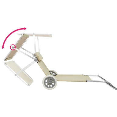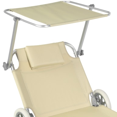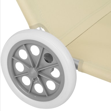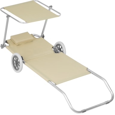 Finns det inte en ledig solstol så långt ögat kan nå? Det behöver inte längre störa dig med den mobila aluminium-solstolen från tectake. Vår superlätta solstol på hjul är lätt att dra med sig och tack vare de stora gummihjulen sjunker den inte ner i sanden. Det slitstarka överdraget och den mjuka huvudkudden gör stolen bekväm att ligga i. Liggposition och solskydd kan ställas in flexibelt och garanterar därför bästa möjliga sommarnjutning. I hopfällt tillstånd förvandlas solstolen i en handvändning till en transportvagn för handdukar, badtofflor och andra badtillbehör. Med en solstol från tectake hittar du alltid din drömplats vid havet, i trädgården eller på campingsemestern: den perfekta utemöbeln för sommaren.