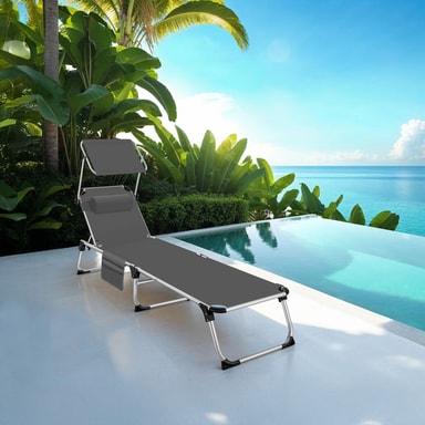 Solsängen Aurelie från tectake är den ultimata solstolen för total avkoppling. Med 6 justerbara lägen kan du anpassa ryggstödet för maximal komfort. Den tjocka nackkudden och det steglöst justerbara soltaket ger extra bekvämlighet och skydd mot solens strålar. Aurelie är inte bara en bekväm och slitstark solstol, den är också lätt att transportera och förvara tack vare sin hopfällbara och platsbesparande design. Med dess praktiska sidoficka har du gott om utrymme för att förvara solkräm, böcker eller andra strandtillbehör. Med Aurelie kan du verkligen njuta av solen och avkopplingen vid stranden eller i trädgården, när som helst och var som helst.