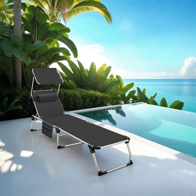 Solsängen Aurelie från tectake är den ultimata solstolen för total avkoppling. Med 6 justerbara lägen kan du anpassa ryggstödet för maximal komfort. Den tjocka nackkudden och det steglöst justerbara soltaket ger extra bekvämlighet och skydd mot solens strålar. Aurelie är inte bara en bekväm och slitstark solstol, den är också lätt att transportera och förvara tack vare sin hopfällbara och platsbesparande design. Med dess praktiska sidoficka har du gott om utrymme för att förvara solkräm, böcker eller andra strandtillbehör. Med Aurelie kan du verkligen njuta av solen och avkopplingen vid stranden eller i trädgården, när som helst och var som helst.