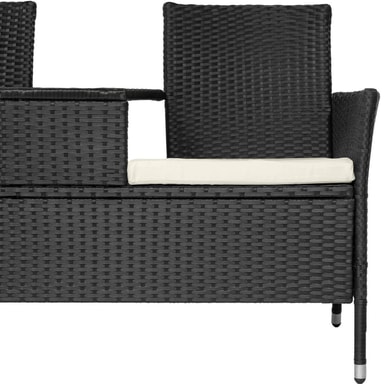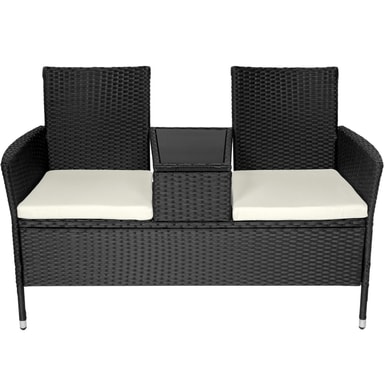 Konstrotting-materialet gör bänken lätt att rengöra, och med måtten 131 x 59 x 82 cm erbjuder den en bekväm plats för två personer.