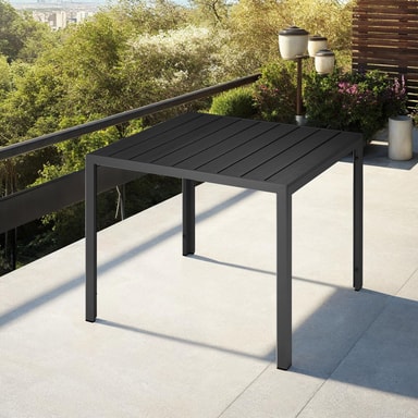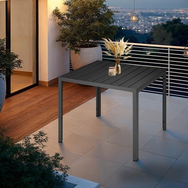 Den kompakta storleken och de klara linjerna ger detta trädgårdsbord från tectake en design som talar för sig själv. och bordet presenterar sig som ett helt oberoende designelement både utomhus och inomhus. Det eleganta utseendet får detta trädgårdsbord framförallt genom panelen i träoptik. Den robusta aluminiumramen gör möbeln väderbeständig, lätt att förflytta och mycket stabil. Ojämna golv kan kompenseras med de två höjdjusterbara fötterna. Bordet utmärker det sig genom en stor robusthet och ett lågt underhållsbehov. Få en fräsch stil både utomhus och inomhus med vårt trädgårdsbord Maren från tectake.