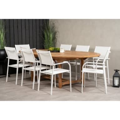Ett förlängningsbart bord, helt i naturträ / teak, med en ytterst tidlös design och en prägel av hemtrevnad. Teak är ett träslag som inte enbart är vackert, men som också är motståndskraftigt för olika slags väder - och slittåligt överlag.