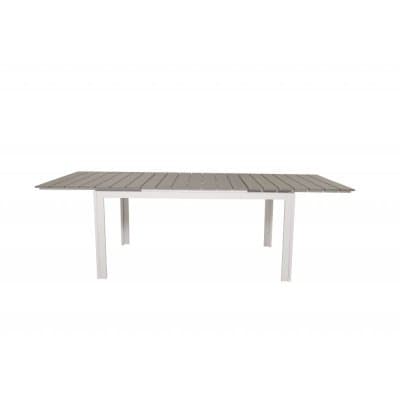 Ett förlängningsbart matbord (kan utvidgas till 240 cm i längd, från en ursprunglig storlek på 160x90 cm) som presenterar en toppskiva av slittåligt aintwood-material tillsammans med ett kraftigt underrede bestående av aluminium, i vitt.