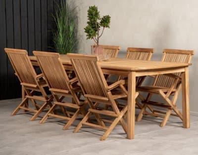 Ett bord tillverkat helt i teak, ett slittåligt träslag präglat av ett naturligt, vackert utseende.