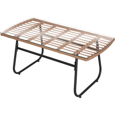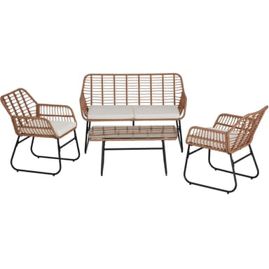 Trädgårdsmöblernas tillverkning av fint flätad konstrotting imponerar inte bara med sitt tilltalande utseende, utan också med sin hållbarhet och väderbeständighet. Trädgårdssoffan, trädgårdsstolarna och soffbordet är tillverkade med en solid stålram med pulverlackering vilket säkerställer en hög stabilitet och gör setet tåligt och viktbärande. Utemöblernas höjdjusterbara och halkfria plastfötter ger dessutom ett säkert grepp på alla underlag.