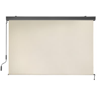 Vertikalmarkisens robusta tyg av vattenavvisande polyester imponerar med ett högt UV-skydd, medan det pulverlackerade aluminiumhöljet säkerställer markisens stabilitet och hållbarhet.