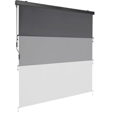 Tack vare det smidiga vevsystemet kan balkongskyddet enkelt justeras till önskad längd och ger alltid det sol- och insynsskydd du behöver. Med två stabila väggfästen hålls terrassmarkisen säkert på plats även vid lättare vind. Särskilt praktisk är det medföljande monteringsmaterialet som möjliggör en okomplicerad och snabb montering på både vägg eller tak.