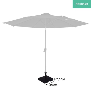 Denna parasollfot är passande för VONROC parasoll Rosalina (GP502XX) och VONROC parasoll Recanati (GP503XX). Vid användning av parasoll Rosalina så kan foten fyllas med sand för optimal stabilisering. Vid användning av parasoll Recanati så rekommendera vi att fylla foten med sand för optimal stabilisering. Parasollfoten fungerar även utmärk med andra märken. Parasollet som ska användas på foten måste ha en diameter på 38 - 48mm.