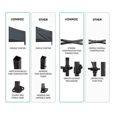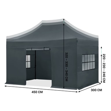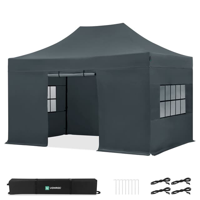 VONROC partytält 3x4,5 m Premium Easy-Up med sidoväggar är ett komplett set för dig som vill skapa en skyddad och flexibel yta utomhus. Det passar perfekt för trädgårdsfester, grillkvällar, födelsedagar, marknader och andra tillfällen där du vill ha både skydd och komfort.